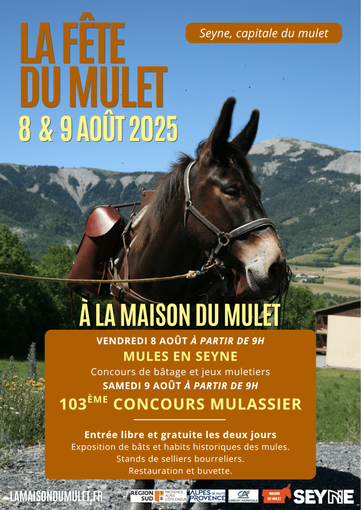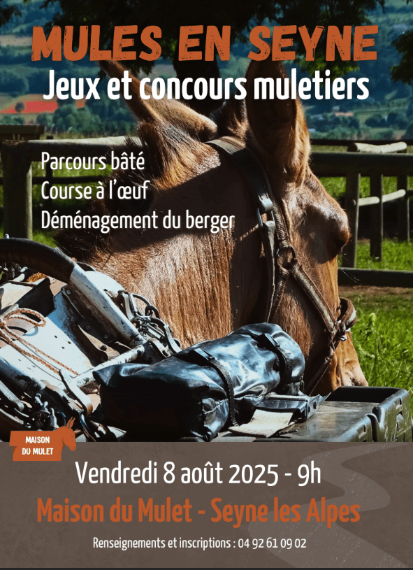 Depuis 1923, Il s’inscrit dans la fête de Seyne. Concours modèle et allures. Défilé des juments et les jeunes de l’année, muletons ou poulains des éleveurs locaux. Et présentation de mules et mulets adultes de différentes origines.