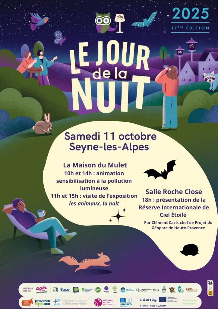 Le Géoparc de Haute Provence organise à la Maison du Mulet, en lien avec notre exposition « les Animaux, la Nuit », une journée de sensibilisation à la pollution lumineuse et la labellisation RICE