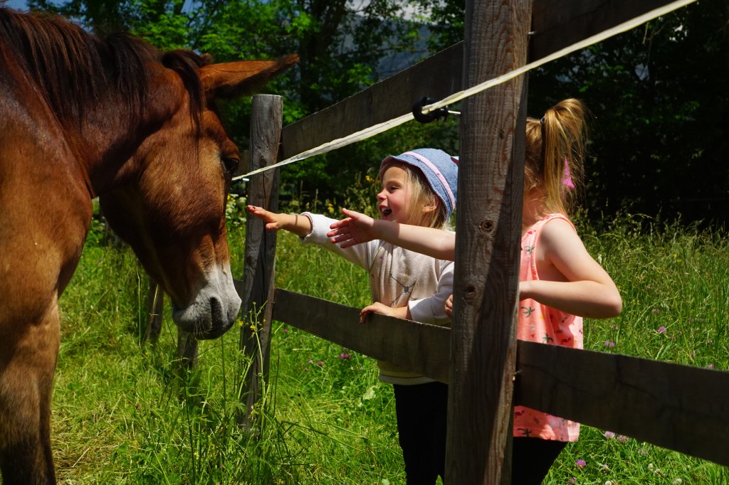 Les enfants peuvent approcher, nourrir les animaux de la basse-cour et de la mini-ferme, et se défouler dans le jardin de jeux.
